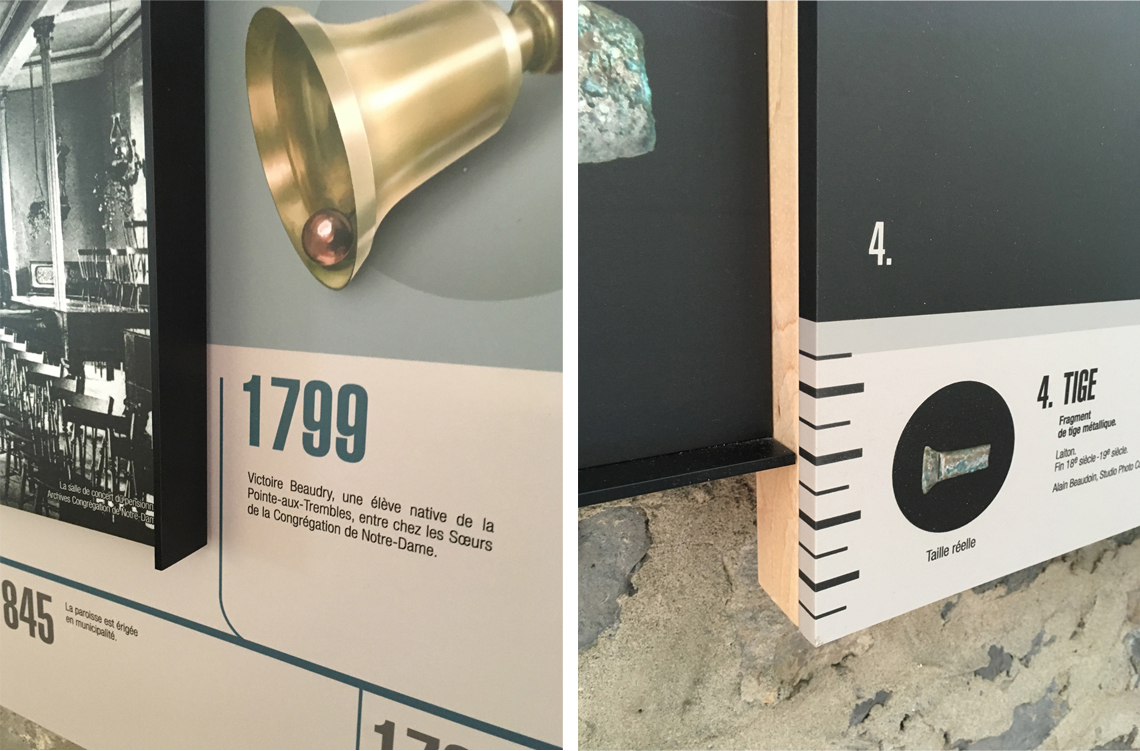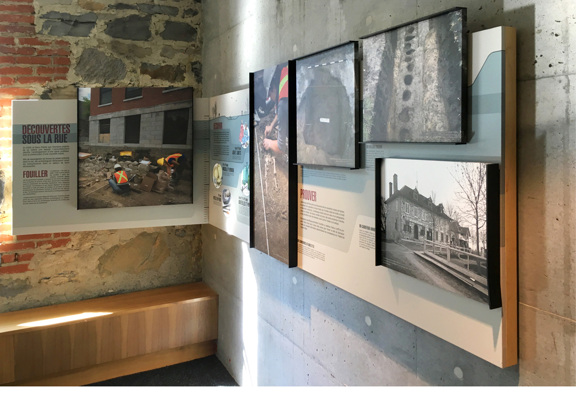 Pour ce projet réalisé pour la Ville de Montréal, l’accent a été mis sur la valorisation du patrimoine archéologique de l’arrondissement Rivière-des-Prairies–Pointe-aux-Trembles. En collaboration avec Pirogue Communications, un exercice de mise en scène du patrimoine du Vieux-Pointe-aux-Trembles a été réalisé au bureaux de la mairie d’arrondissement. Ce projet clés en main, inauguré en 2018, a inclus la conception, la scénarisation, ainsi qu’une recherche et une documentation approfondies pour présenter de manière engageante et éducative l’histoire archéologique et architecturale locale.