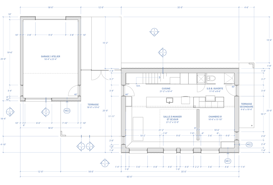 Le Projet Argenteuil est une résidence conçue autour des principes de l’architecture passive. Le développement volumétrique et conceptuel vise à optimiser l’efficacité énergétique tout en créant un espace de vie fonctionnel et accueillant. Les techniques de construction, associées à une isolation avancée et des matériaux soigneusement choisis, réduisent considérablement les besoins en chauffage et en climatisation. Le projet inclut une étude technique détaillée, avec des plans et devis précis pour garantir une exécution conforme aux exigences de performance. Cette résidence incarne un équilibre entre l’efficacité énergétique et un design pensé pour un mode de vie respectueux de l’environnement.